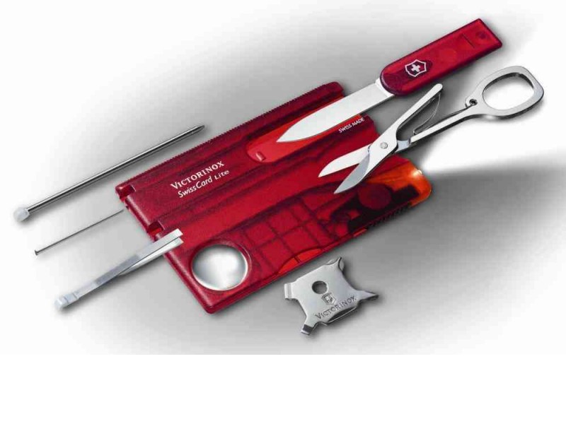 "Carta di credito" del produttore svizzero VICTORINOX. Contiene 13 strumenti, incluso un LED, disponibili ogni giorno nel tuo portafoglio accanto ad altre carte. Gli strumenti sono in acciaio inox di grado 1. Prodotto pluripremiato per brevetto.